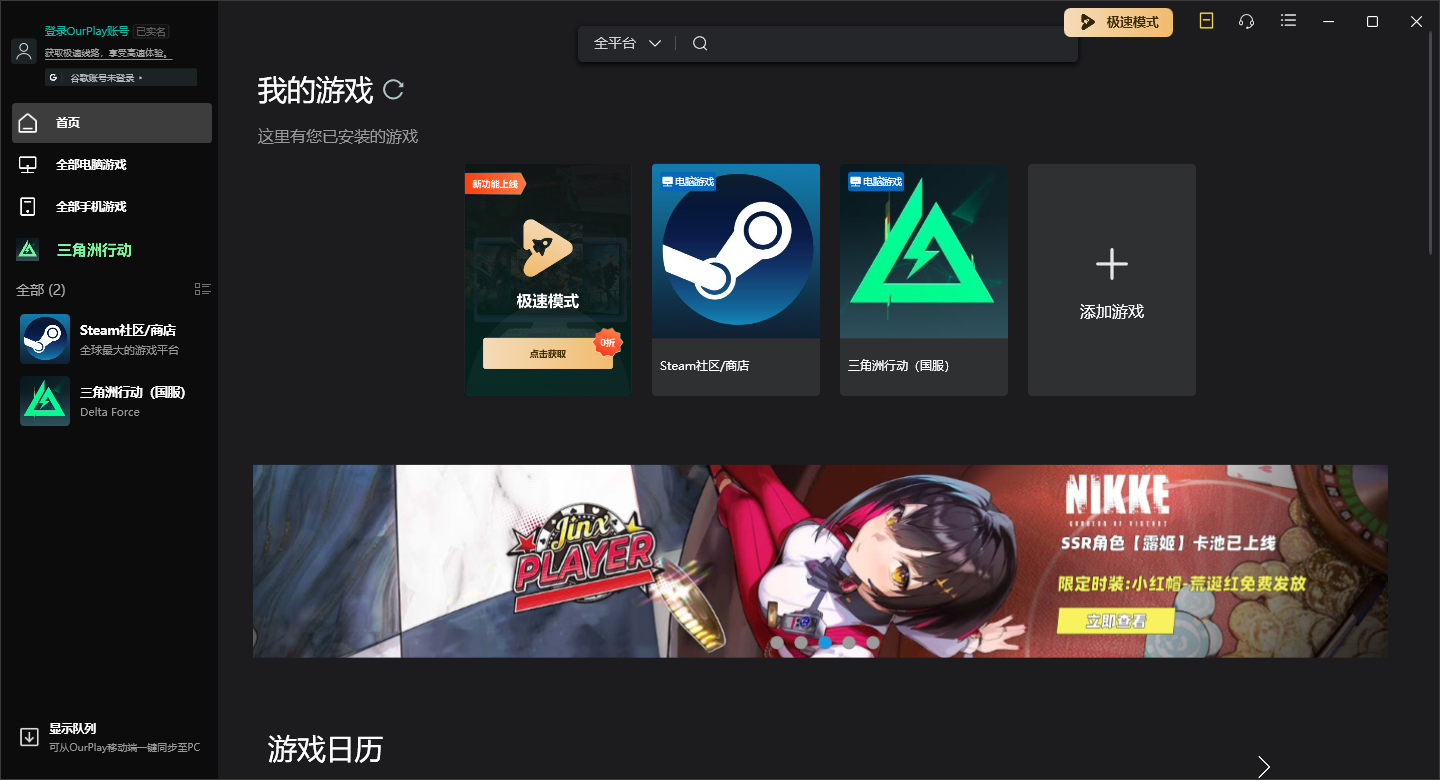 OurPlay是一款免费的PC游戏加速器,同时也是一款功能强大的安卓模拟器,能够加速各种热门的电脑和手机游戏,极速畅玩。支持加速的游戏十分齐全,腾讯最新游戏《三角洲行动》也能加速。全新极速模式现已上线,登录即可0折免费领取,感兴趣的小伙伴不容错过。