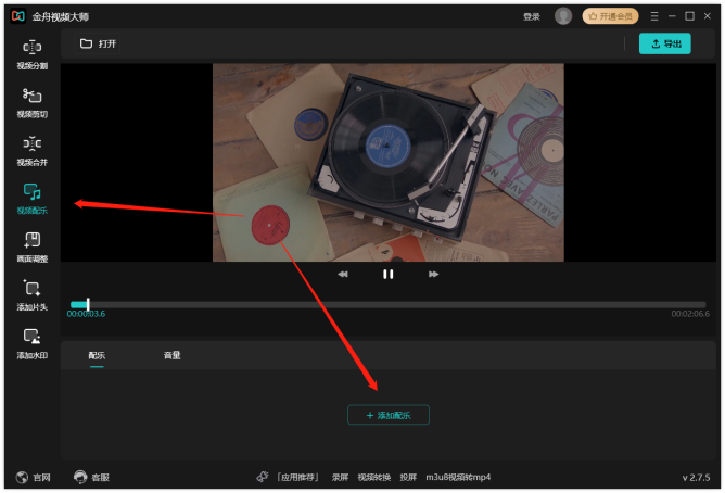 支持添加背景音乐,可设置音乐循环,调整音量大小