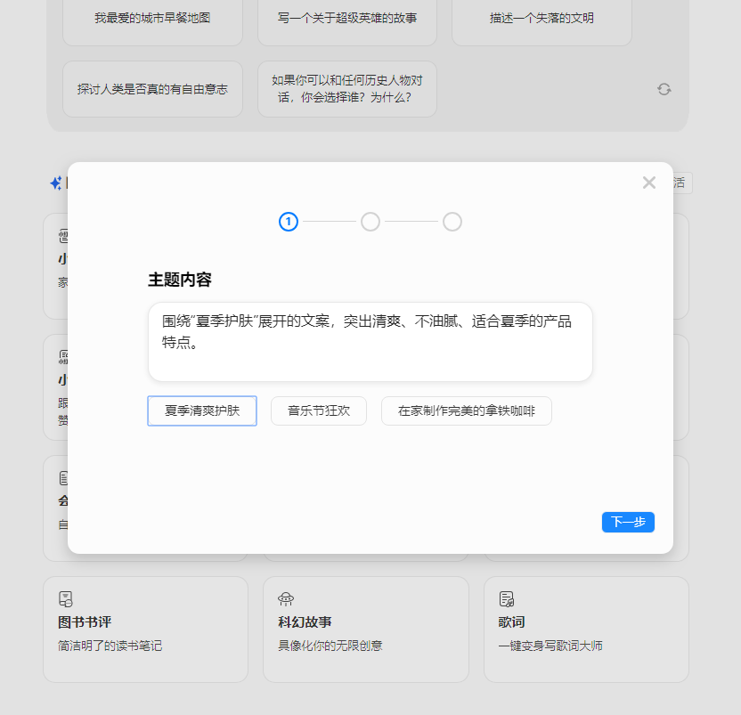 3、输入文案类型,点击下一步