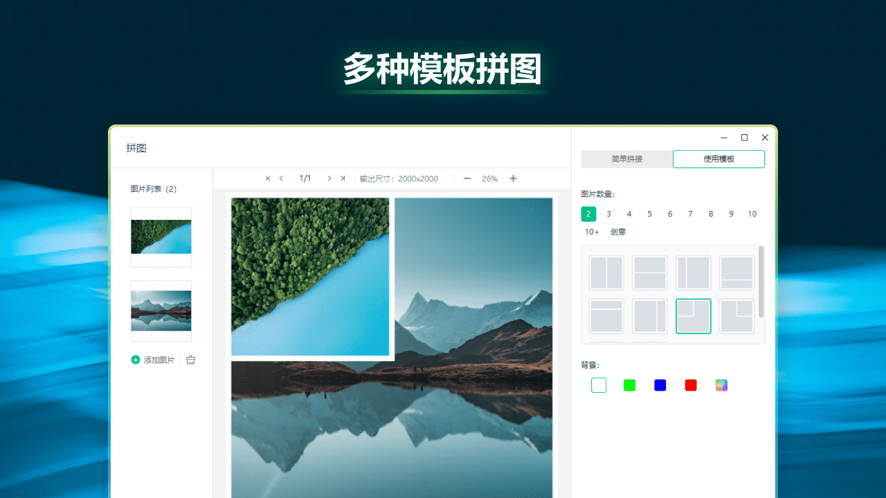 自由拼图工具:支持模板拼图、自由拼图等模式可随意调整拼图间距、边框等