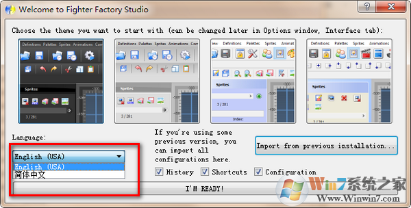 打开Fighter Factory Studio软件显示设置界面,在这里选择中文