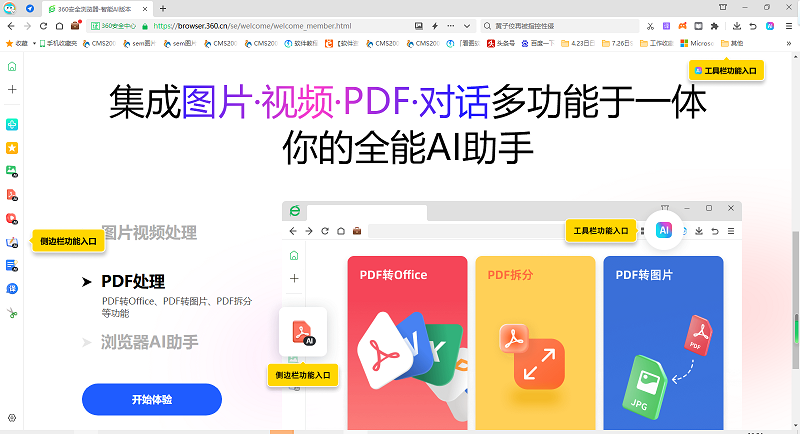 360浏览器电脑版是一个非常好用简单的智能浏览器,这个智能浏览器能为用户提供非常丰富的实用功能,该软件支持用户对主题、背景、字体等参数进行自定义设置,能满足用户多样化的使用诉求,另外该软件还具备多种安全技术,能高效检测和杀除各种病毒,除此之外,该软件还有很多软件优势和产品特色等您下载后使用体验!