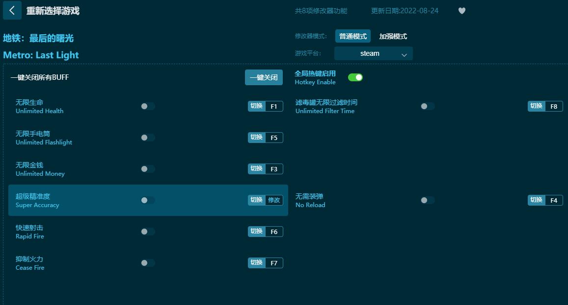 地铁:最后的曙光八项修改器普通模式8项内容:
