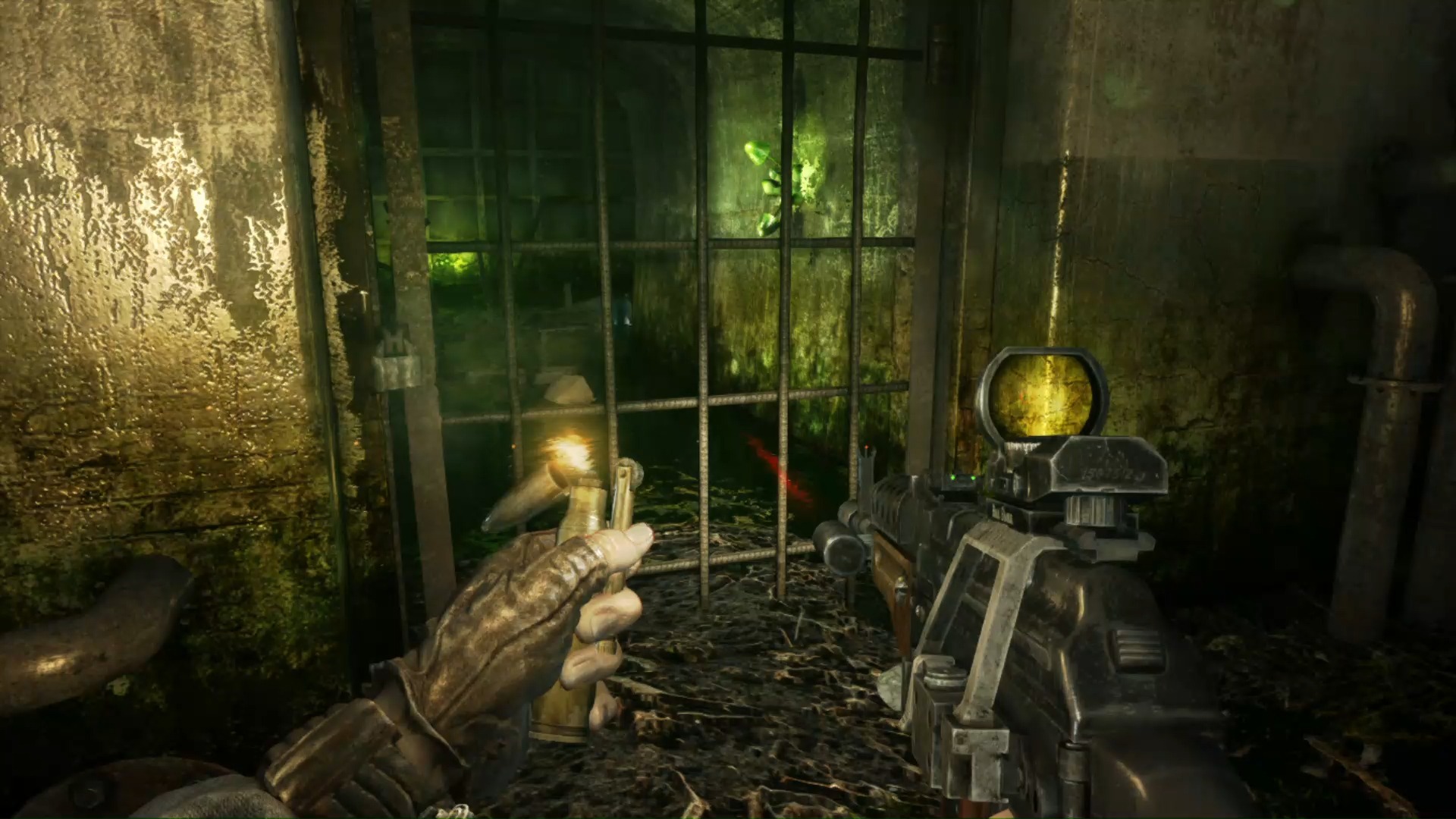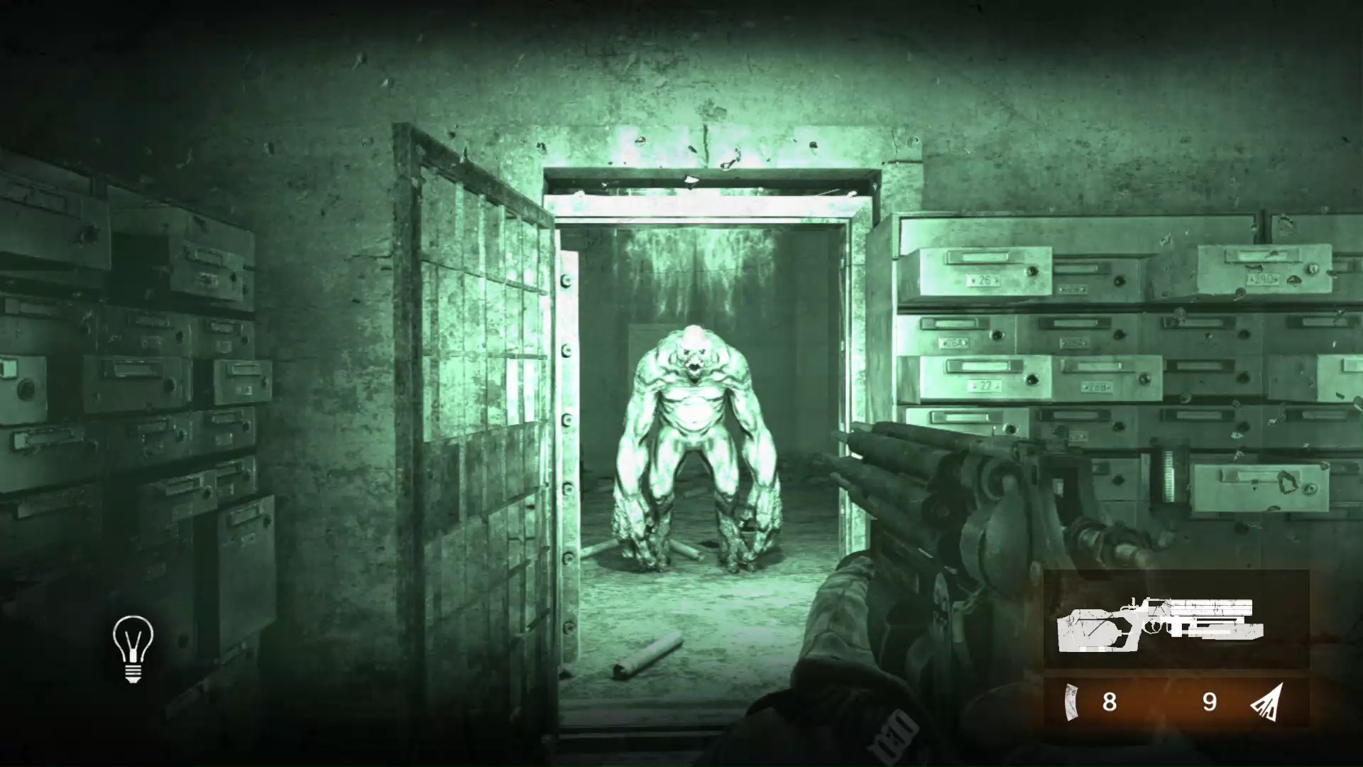 而在对上变种生物的时候,虽然没有对上人类那么麻烦,不过地表上的变种生物绝对不会因为手上不能拿枪而变得更好对付。变种生物的数量通常都会比人类还多,同时他们可以从地面直接窜出来,并且具有爬墙的能力,被包围时会相当危险。而这次在《地铁:归来》最后的曙光的地底通道中,还有新的敌人,必须先用光照让它们露出弱点之后才能开火击杀(《心灵杀手》...!?)!