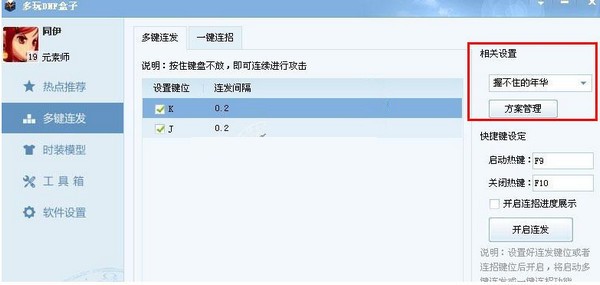当玩家有多个角色,并且可能要设置不同的技能连发时就可以使用方案管理功能了。