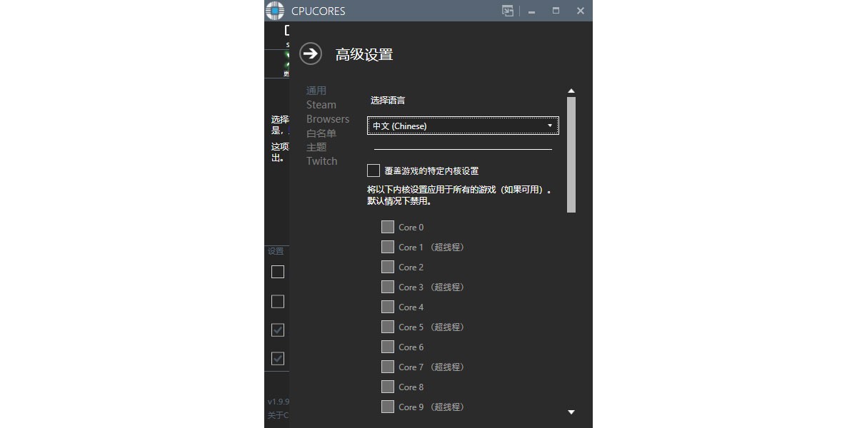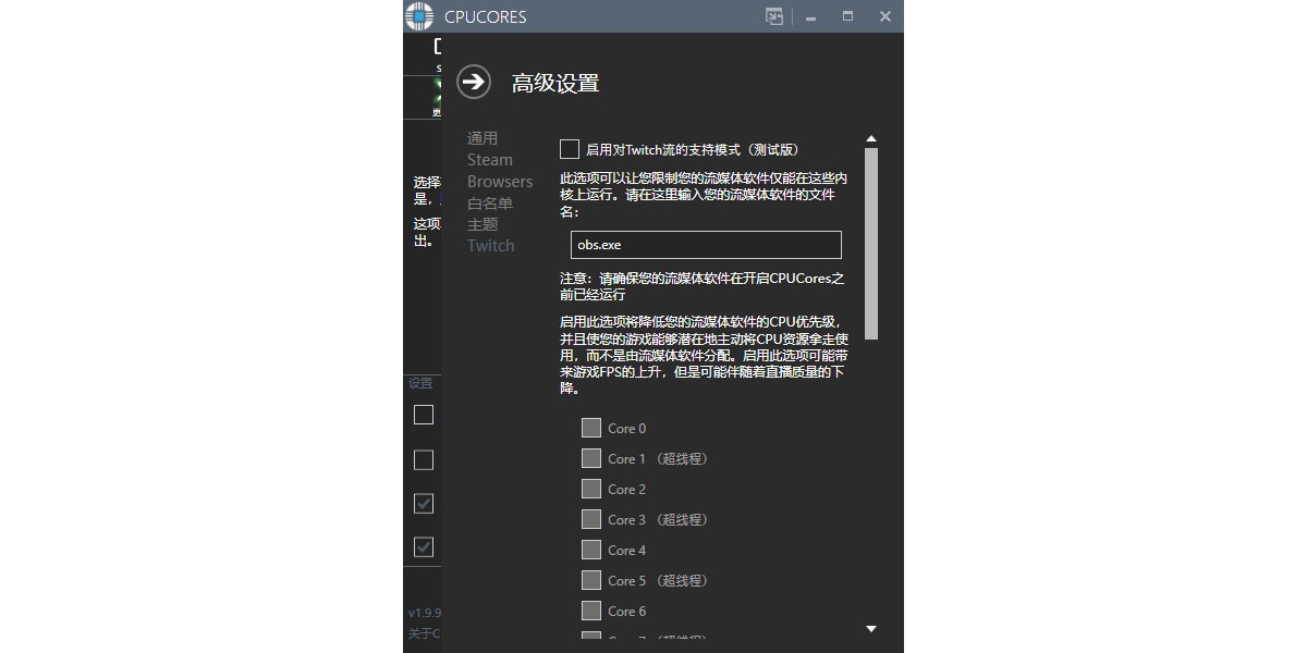 CPUCores会分离并提供内核空间给你的游戏使用的部分。