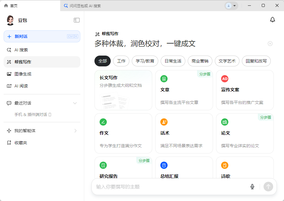 豆包写作技能全新升级,新增「分步骤」撰写长文功能。在生成文章前,豆包支持先创建文章大纲,你可以自由定制大纲内容再进行文章生成,确保内容更加贴合你的需求。