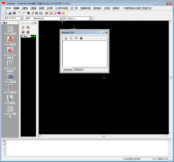 这一竖直的工具栏坐落于对话框的左边,用于操纵全部层的信息内容。操纵条的上边为Redraw、AddLayer、AllOn、AllOff按键。在其中Redraw是更新显示,与快捷键“R”有同样作用。Addlayer能够在目前的层后边再加一层,一样还可以运用莱单中Edit->Layers->AddLayers指令来完成提升层的实际操作。AllOn按键将全部层都再主工作中地区内显示出去。AllOff将除当今层以外的全部层都关掉。