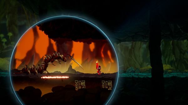 游戏的画面采用了较为卡通的手绘风格,相比于《奥日》,虽然没有那么精美,但是元素颇多的场景和各种异世界法则的表现都做的十分的不错,而游戏一些场景的刻画还是很不错的,像地下一片黑暗的世界,玩家需要借助微光世界的法则,来看清这个世界,而其中出现各的各种蜘蛛怪物,更是和音乐配合,让玩家心跳加速,背景中众多的蜘蛛卵的细节刻画更是看的头皮发麻。游戏的画面大部分都对于法则世界和现实世界有着突出的分辨,除了你释放法术借助异世界法则的圆环距离,更是在色调上有着鲜明的对比。