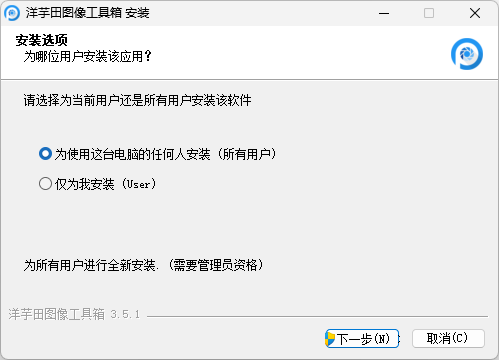 1、下载安装程序并打开,选择为所有用户安装,点击下一步