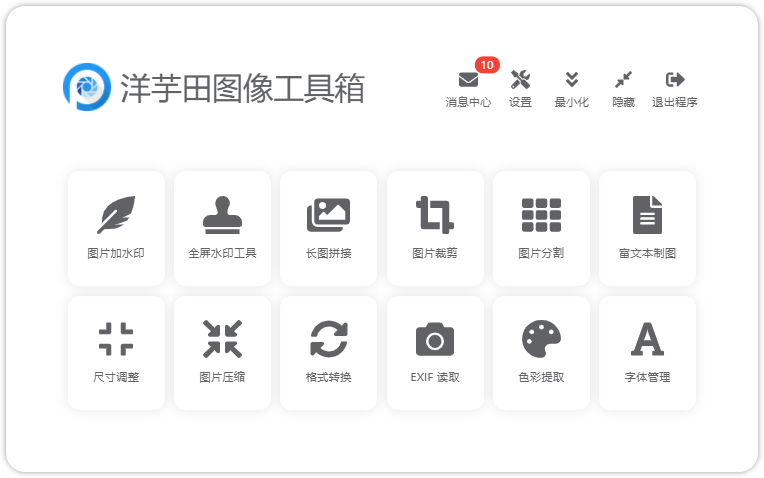 洋芋田图像工具箱是一个多功能的图像处理软件,支持格式转换功能,兼容jpeg/jpg、png、webp三种主流格式,适用于绝大多数转换场景。图片分割功能可以自定义分割模式,一键切图,发布图片到社交媒体时非常实用。还有图片加水印、图片压缩、长图拼接等多种实用工具待你探索。
