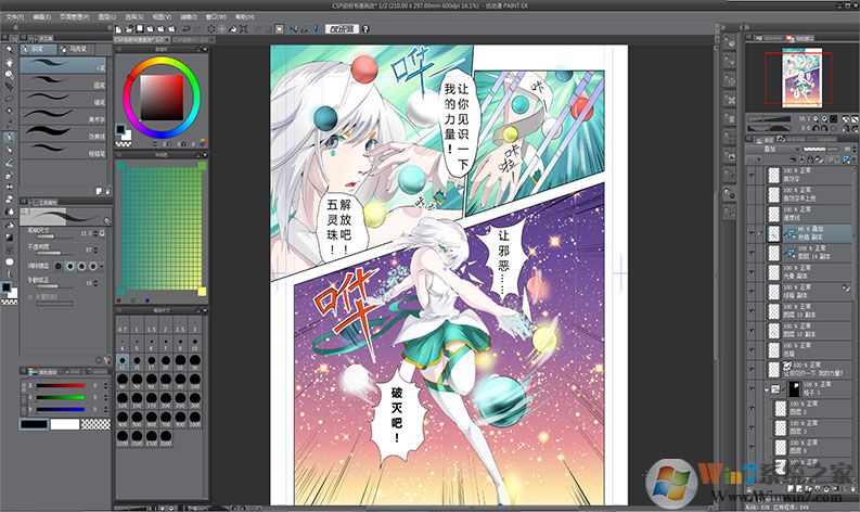 从分镜、草稿、格子分割、上墨线、粘贴网点纸、添加背景/效果,到最后输入对白等一系列漫画创作的流程,均可在PC上进行。