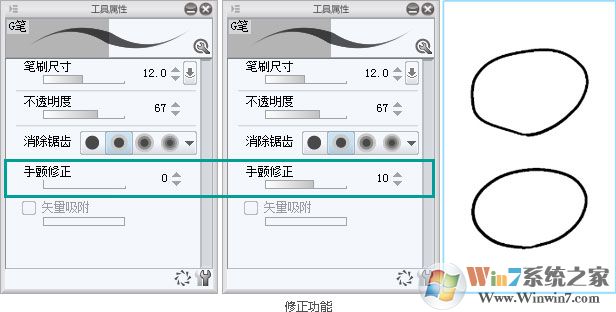 优动漫 PAINT EX版强大的笔压感应功能,可助您的作品展现真实、自然的笔触。启用“修正功能”可以防止线条抖动和错乱;启用“入峰”/“出峰”,则可通过设置起笔和收笔的强弱度,制造真实画笔的绘制效果。