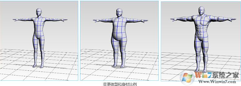 任意变更3D素描人偶的身材比例及体型