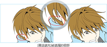 优动漫 PAINT EX版可以忽略细小的间隙,吸附于已上色的区域建立选区。 参照其他图层上的线稿,防止填充色溢出填充区域;边参照图像边创建形状复杂的选区——与启用快速蒙版后上色的功能相比,软件所具备的选区创建功能,更能为您的作品有效地进行贴网、纯色填充和上色。