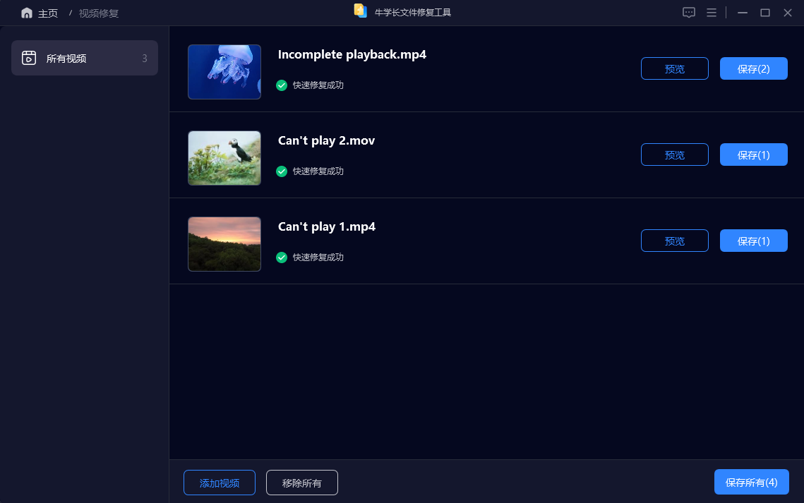 牛学长文件修复工具可修复在拍摄、录制、传输、编辑、转换或处理过程中导致视频损坏、无法打开、没有声音、黑屏、花屏、播放报错的等问题视频!