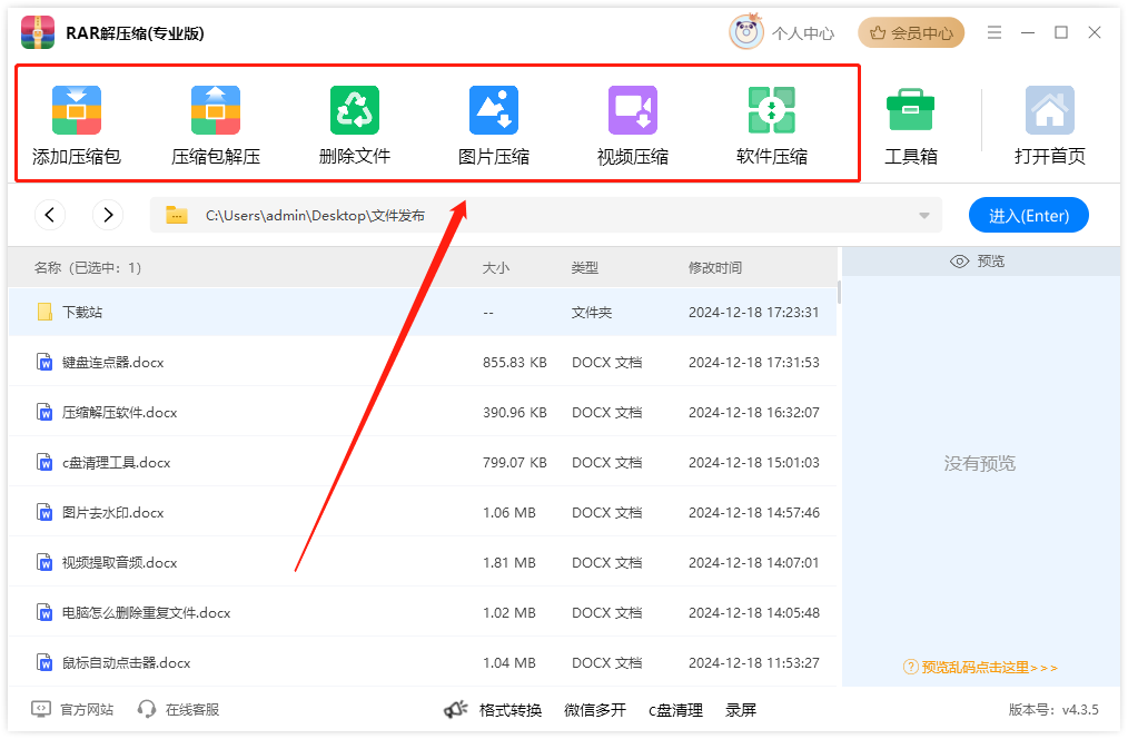 软件可充当电脑的「文件资源管理器」使用,实时预览电脑文件,且支持将选中的文件进行压缩、解压、删除等操作