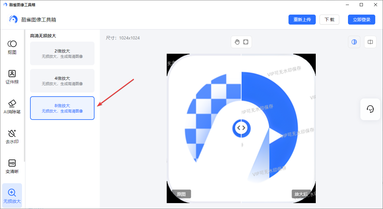 3、选择需要放大的倍数,稍待片刻即可完成放大