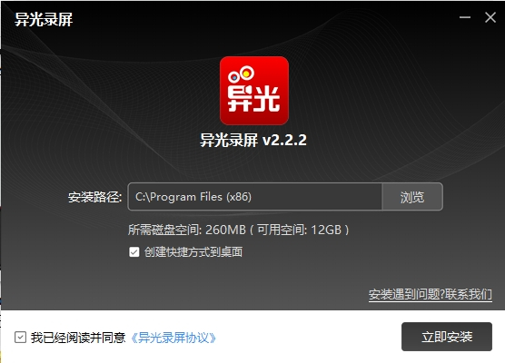 1、将异光录屏直接安装到电脑,点击立即安装