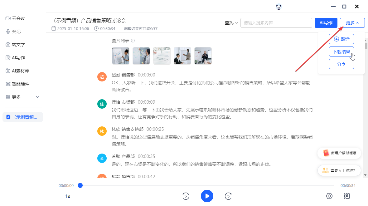讯飞听见电脑版是一款专业的语音转文字软件,拥有强大的语音识别功能,支持多国语音,可以识别不同的说话人,转换速度快,能够做到实时转写,也能导入音频文件进行转写,在多种场景下都能使用。转换好的文字可以导出为TXT和Word文档,方便查看、分享等操作。有需要的朋友快来下载讯飞听见使用吧。