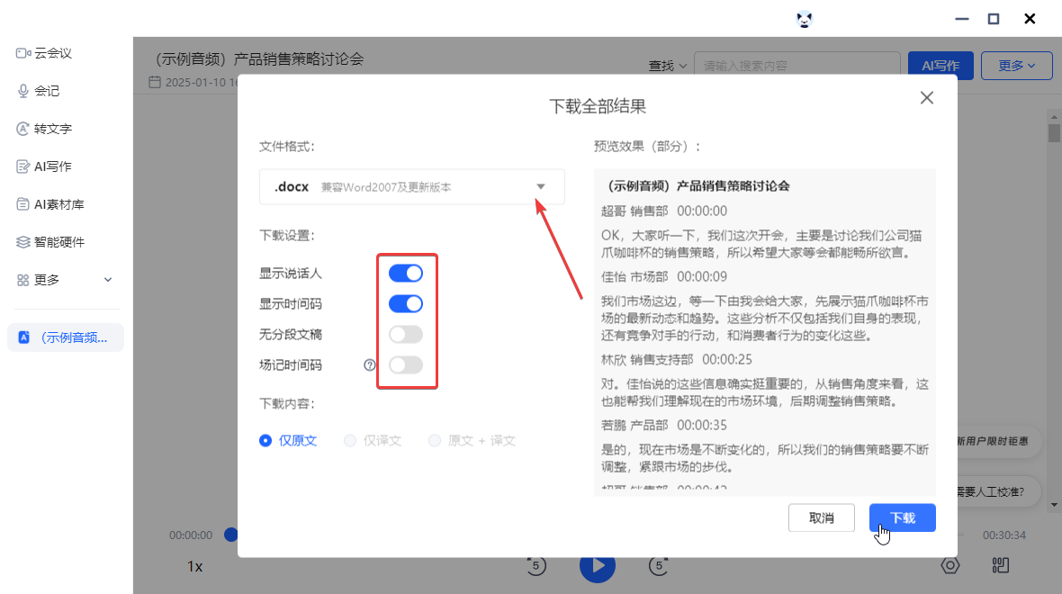 1、在转文字的界面中,找到转换完成的任务,点击查看结果