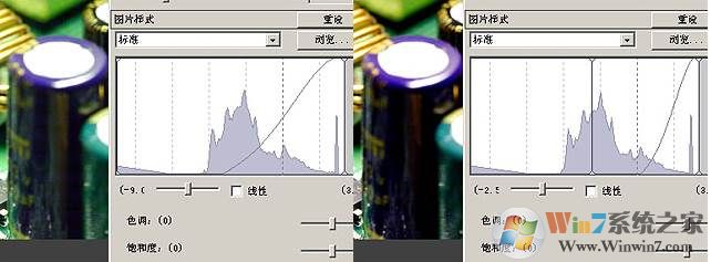 直方图下还有一个拉杆,这里是调整照片处理时的曲线状态。人的眼睛对光的感应不是线性的,若选择“线性”后,照片将不同人眼看到的效果。适当调整曲线,可以在反差、色彩饱各度上有所变化,近似 PHOTOSHOP 中的“曲线”功能。同样,喜欢简单直接出片的朋友,可以略作调整,取得自己想要的效果,而需要二次处理的高要求用户不建议在这里太多调整。