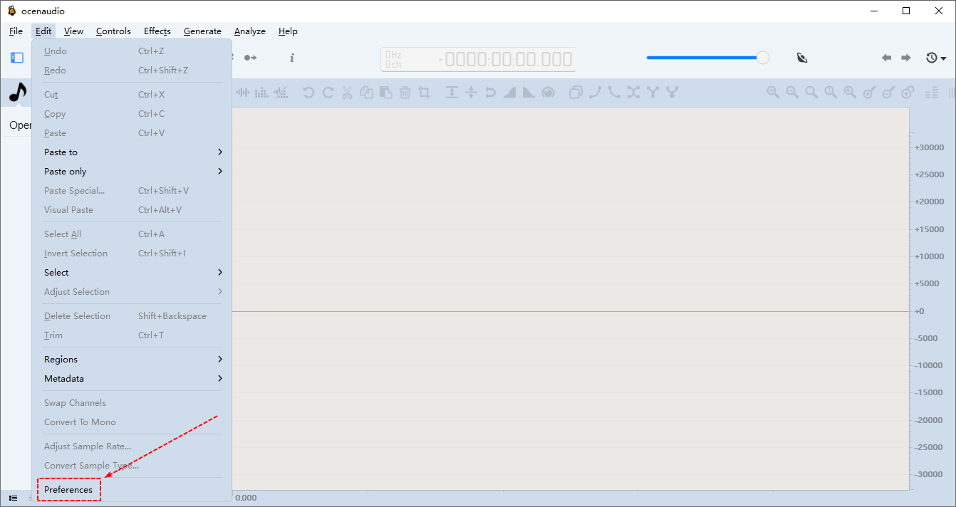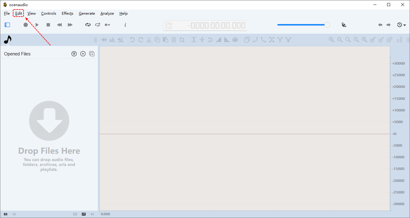 1、安装并打开【ocenaudio】软件,点击左上角的【Edit】,如图所示