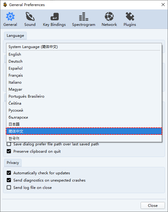 4、在弹出的下拉栏中选择【简体中文】(前面没有【System Language】字样的)即可完成中文设置