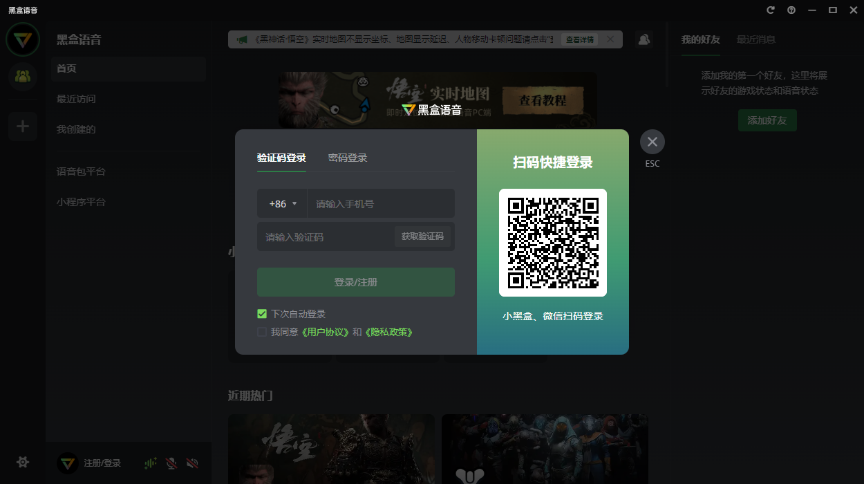 黑盒语音电脑版是一款多功能的游戏语音工具,在使用过程不会弹出广告,占用系统资源低,不影响游戏流畅运行。支持192Kbps高质量语音,内置AI降噪,语音清晰自然。提供海量特色语音包,带来更多有趣体验。还有黑神话地图等多种实用功能等你来探索,感兴趣的小伙伴快来下载黑盒语音使用吧。