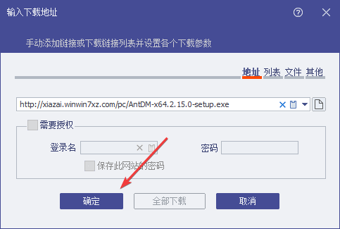 2、输入下载地址,点击确定