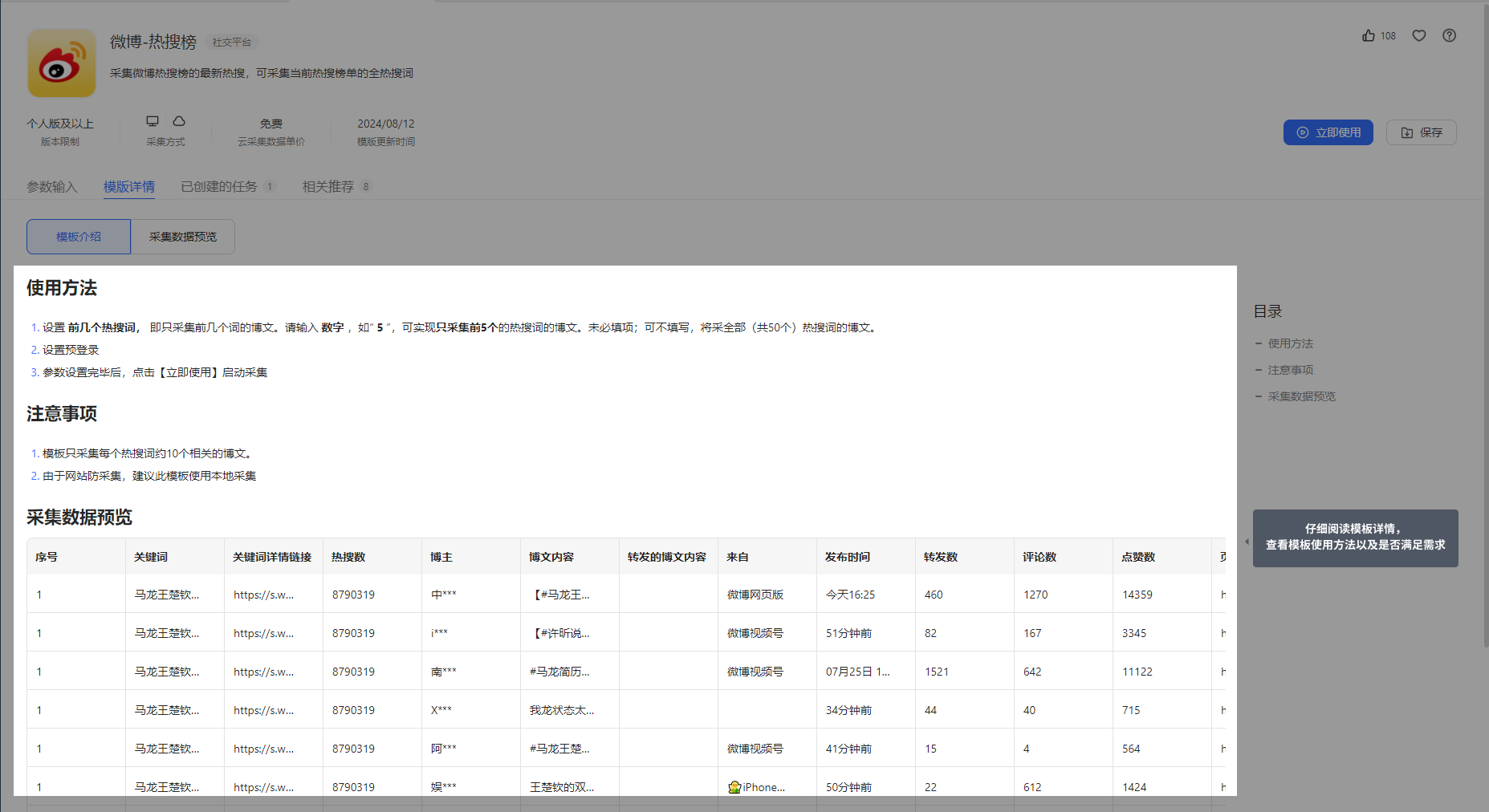 增加模板试用功能,免费体验高版本套餐专享的采集模板;