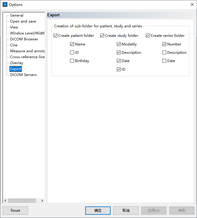 5. 格式转换功能:能够将DICOM图像转换为JPEG、BMP、PNG、GIF、TIFF等常见图形格式,也可转换为AVI、WMV、MP4等电影文件格式,还能将DICOM文件导出为文本或CSV文件。