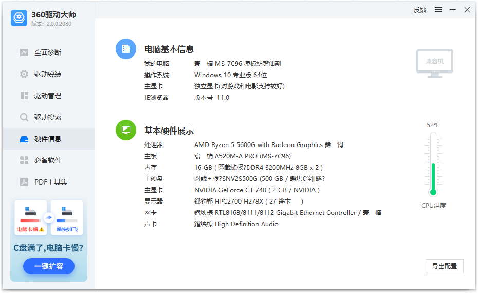 硬件识别与防伪:具备强大的硬件识别能力,不仅能准确识别各种硬件设备,还能首创一键智能识别假显卡、假硬件等,有效防止用户被无良硬件商欺骗,保障用户的权益和电脑使用安全。