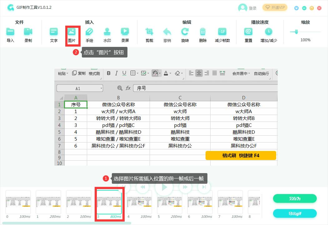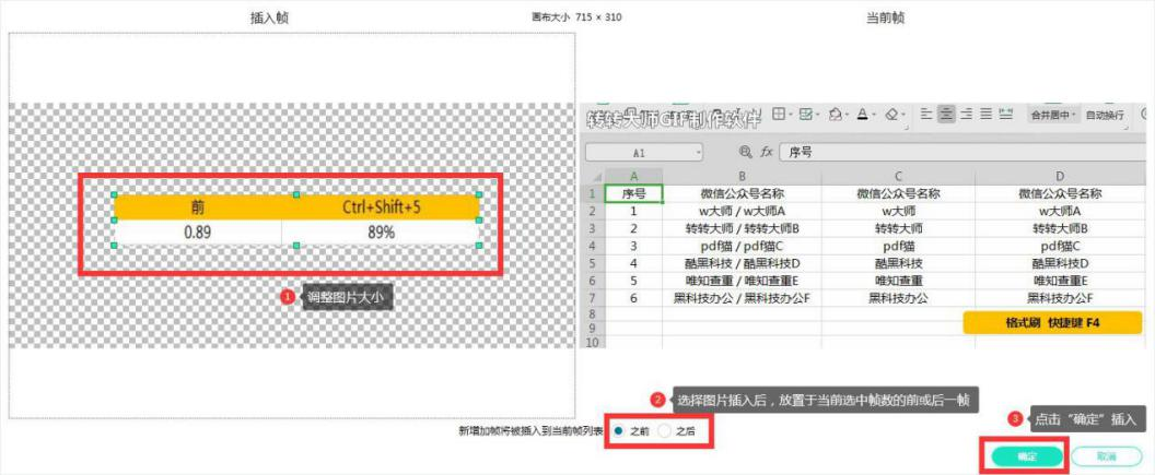 用法:在gif某一帧的前或后一帧,添加图片(添加的图片单独记为一个帧)。