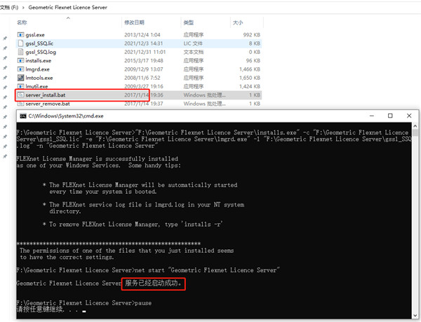 3.以管理员身份运行 “\Geometric Flexnet License Server\server_install.bat”,直至出现提示。