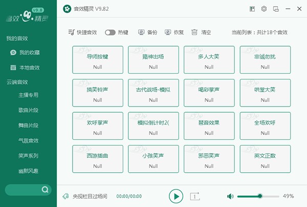 音效精灵是一款适用于网络主播、MJ配音、电台专用辅助音效软件。内置有主播专用,拟物音效,DJ音效,曲片段,抖音精选音效,气氛音效,人物音效,歌生活音效,笑声系列,动感LOOP,恐怖音效,游戏音效,乐器音效,自然环境,铃声音效等50个音效分类专辑,喜欢的可以下载使用。