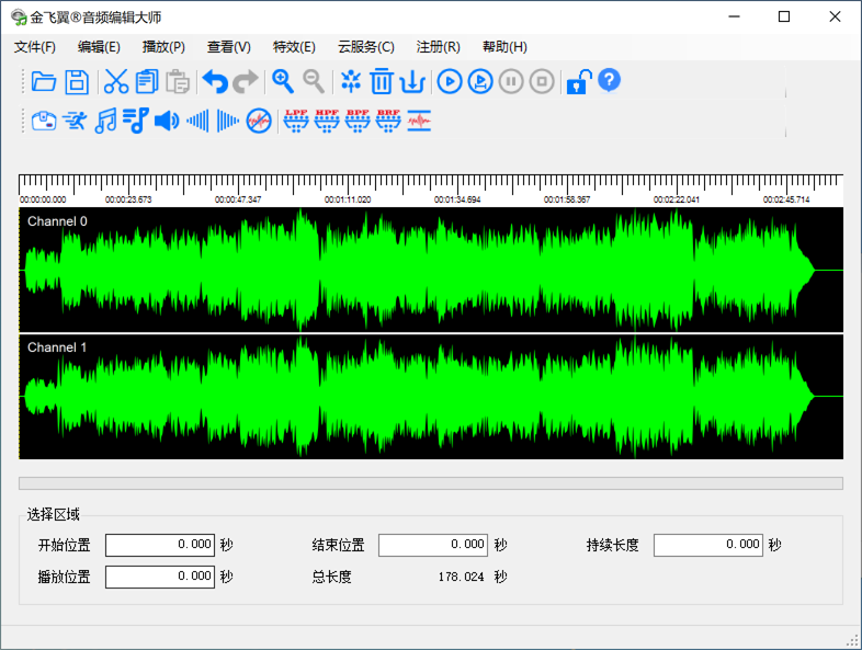 金飞翼音频编辑大师是一款实用的音频编辑软件,支持音乐剪辑、合并及添加背景音乐等常规操作,它有多种好用的滤波器和音频工具,内置很多配乐库。支持美化声音、调节播放速率、声音变速、变调、音高调节、节拍、高低音及音量等高级操作。有需要的小伙伴快来下载!