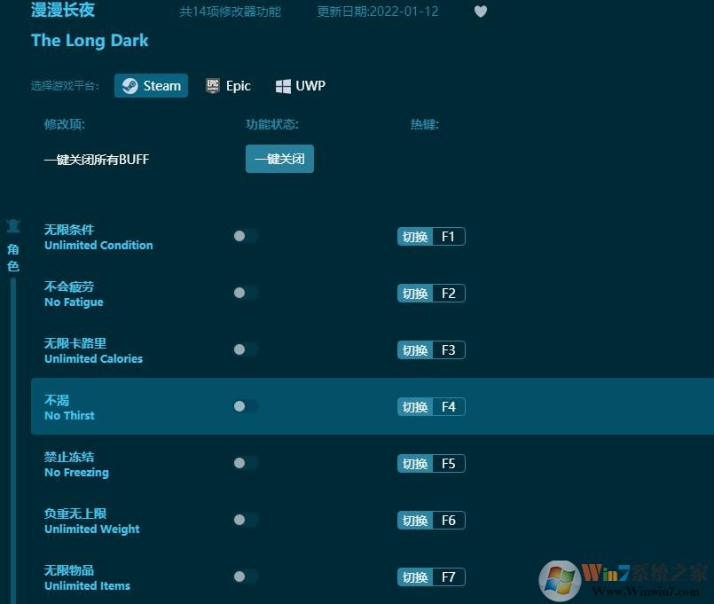 7.修改器正确关闭方法:将开启的功能全部关闭,最后关闭初始化。