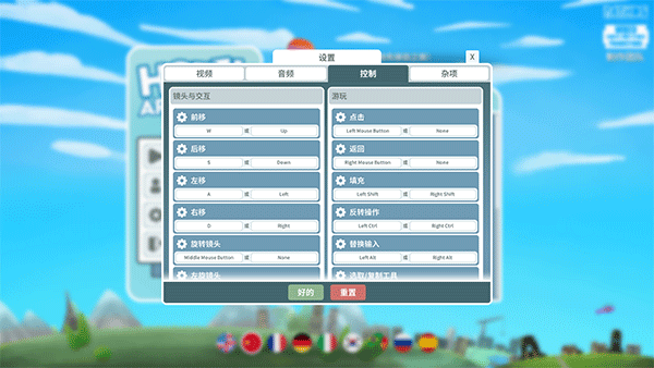 2、进入游戏首页后游戏默认为中文简体模式,点击设置按钮,这里可以进行一些如视频、音频、控制以及语言切换杂项等游戏基础设置;
