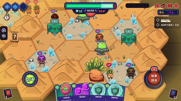 7、外星殖民公司采用回合制战斗模式,当没有可执行的行动任务时,单击屏幕右下角的结束回合按钮结束此回合;