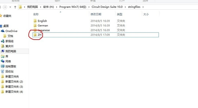 打开安装目录“h:\program win7( 64位)\circuit design suite 10.0\stringfiles”(具体以自己的电脑为准)