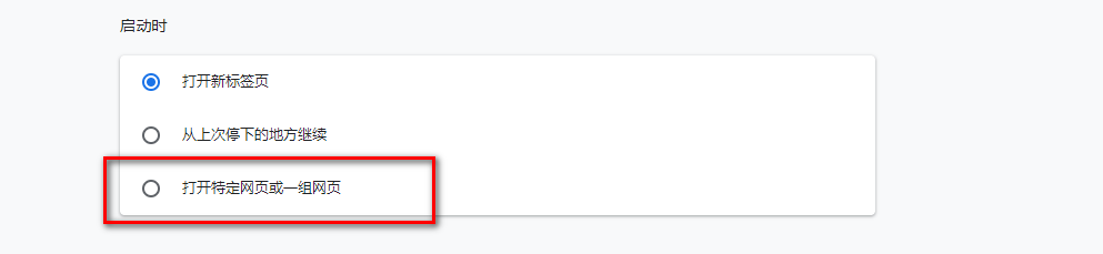 第二步进去chrome设置界面之后,下滑找到启动时选项,可以看到默认是打开新的标签页,如下图所示: