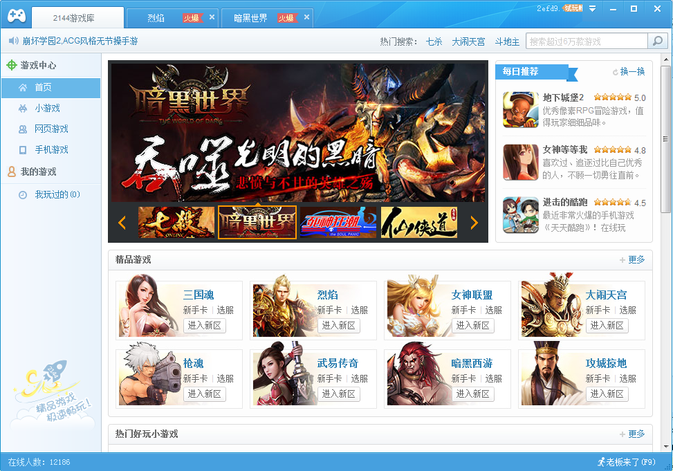 QQ游戏大厅是腾讯旗下最大的游戏平台,这里有丰富的游戏,众多经典游戏欢乐斗地主、、新中国象棋、飞行棋、QQ跳棋、五子棋、围棋、英雄杀、升级、双扣、锄大地、拱猪、三打一、等等游戏等你来玩,还有丰富精彩的赛事等你来参加。