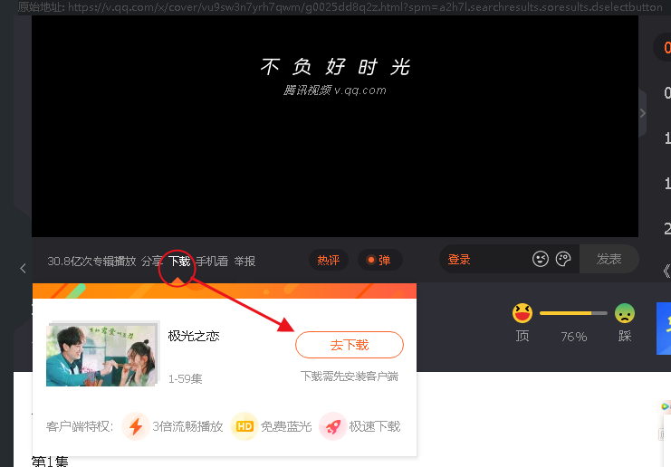 4、客户端直接在线播放时,点击播放器侧标工具栏中的“下载按钮”即可添加相应下载任务。