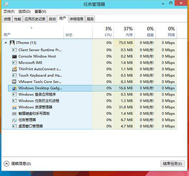 1、关闭所有桌面小工具,然后在任务管理器(可通过在底部任务栏上,单击鼠标右键打开)中终止”Windows Desktop Gadgets“进程;
