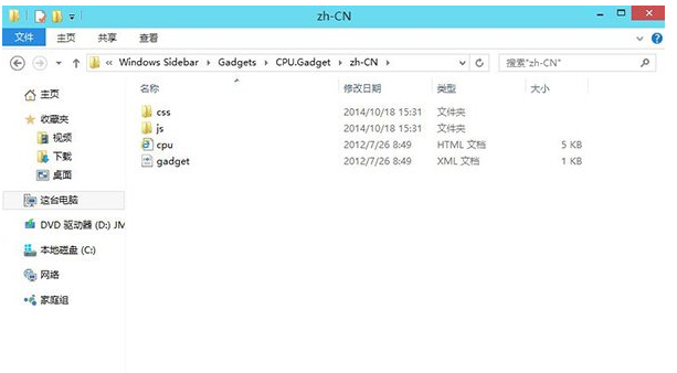 2、进入以下位置:“C:\Program Files\Windows Sidebar\Gadgets”,然后再找到具体出问题的小工具所对应的文件夹,例如“CPU.Gadget”。之后你会在“zh-CN”这个文件夹中发现一个名为gadget.xml的文件。
