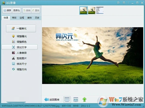 2、常用快调:美白祛痘,调曝光,加文字,剪裁图片,修改大小,更多便捷功能。
