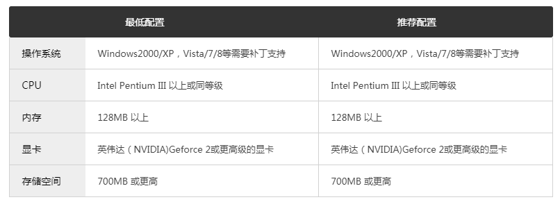 游戏配置要求