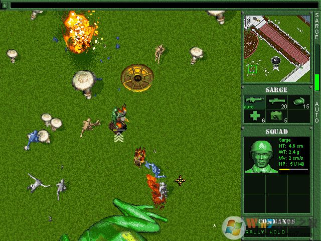 游戏需要要求玩家控制一支活动的塑料人队伍,进行三大战役,执行30多项不同的任务。在开场的动画中,主角沙吉(Sarge)和其他玩具老兵一一亮相,过场动画十分精采。游戏支持3Dfx,其3D效果十分不错,所有单元都采用3D MAX 做框架,然后进行着色的材质处理。游戏中的音效是制作小组到美军演习中录制的,非常的逼真哦。