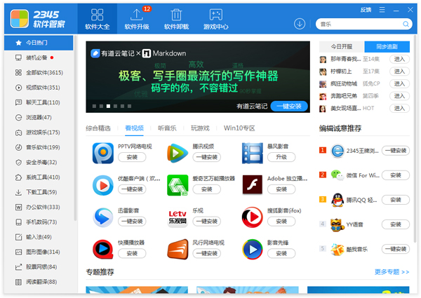 对于软件安装使用中较为粗心或喜爱偷懒的用户,2345软件管家将所有软件进行了精细地分类,用户根据个人偏好进行排序,免除了软件选择过程中的苦恼,同时,2345软件管家还能智能判断软件的升级情况,需要升级的旧软件均能一目了然。对于选择较为谨慎的用户,2345软件管家正版软件的储备量及无捆绑插件的优势也具有极大的吸引力。
